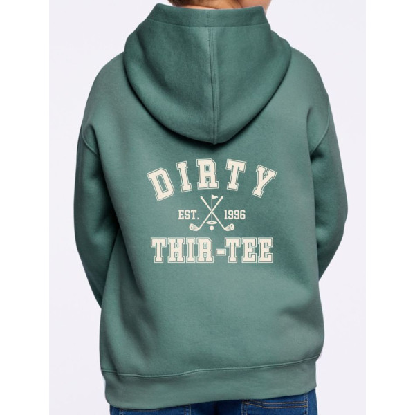 • Coverstitched shoulders, armholes, ribbed cuffs and bottom band